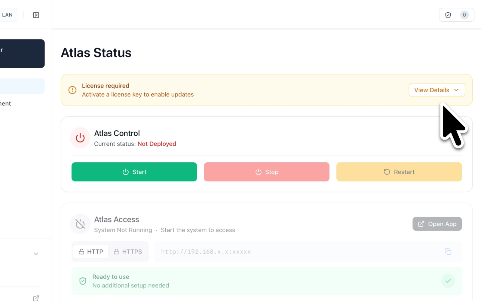A license status alert has been added to the Status page. The alert surfaces license issues at a glance and links through to the full license details, so operators can identify and act on problems without navigating through multiple preference panes.
